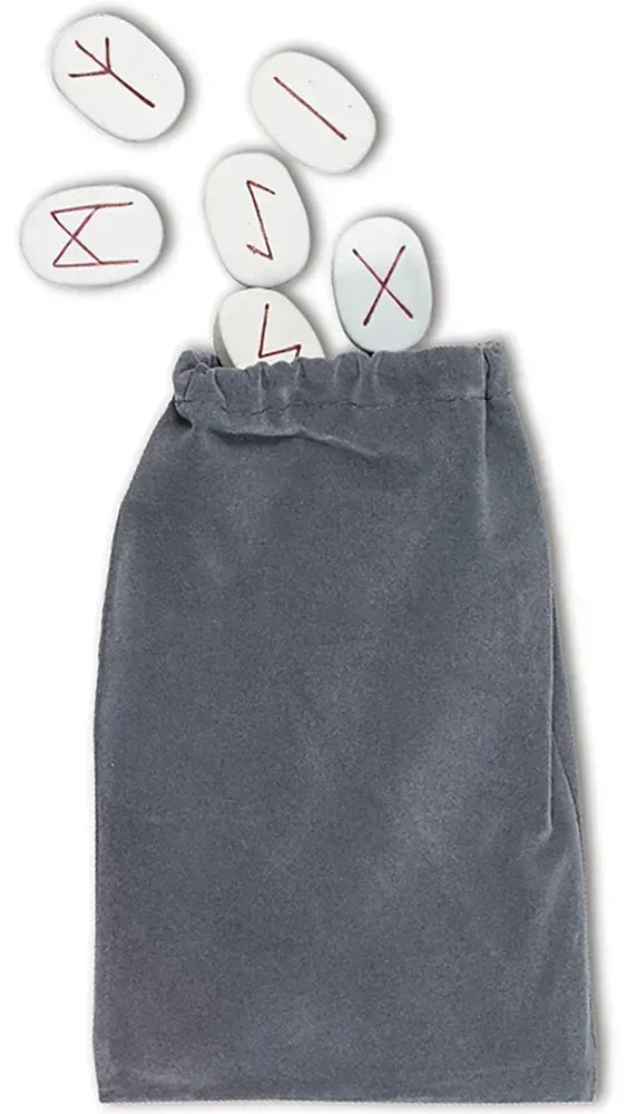 25th Anniversary Edition! The 25 stones in this set are recreations of the Viking Runes, with perpendicular and oblique lines on each stone. Complete with 150-page, illustrated book, The Book of Runes by Ralph Blum. Includes drawstring pouch for holding rune stones. Pull a porcelain stone from the velvet bag and interpret it's powerful message.